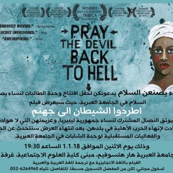 نساء يصنعن السلام يدعونكن لحفل افتتاح وحدة الطالبات لنساء يصنعن السلام في الجامعة العبرية، حيث سيعرض فيلم اطردوا الشيطان إلى… קרא עוד »