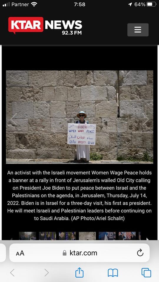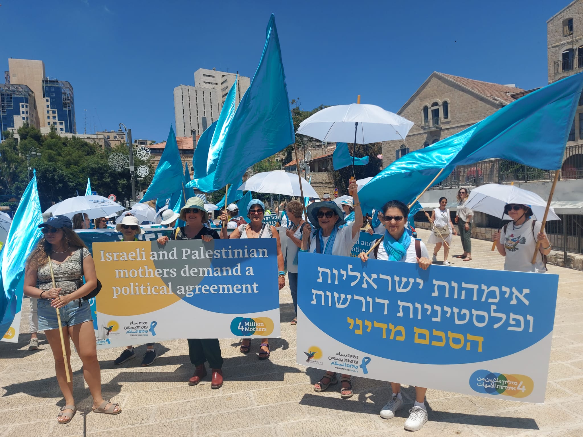 During President Biden’s visit, hundreds of women from the Israeli movement Women Wage Peace and the Palestinian movement Women of the Sun met in Jerusalem today and marched together to the Lions Fountain with this message to President Biden and to the Israeli leadership: