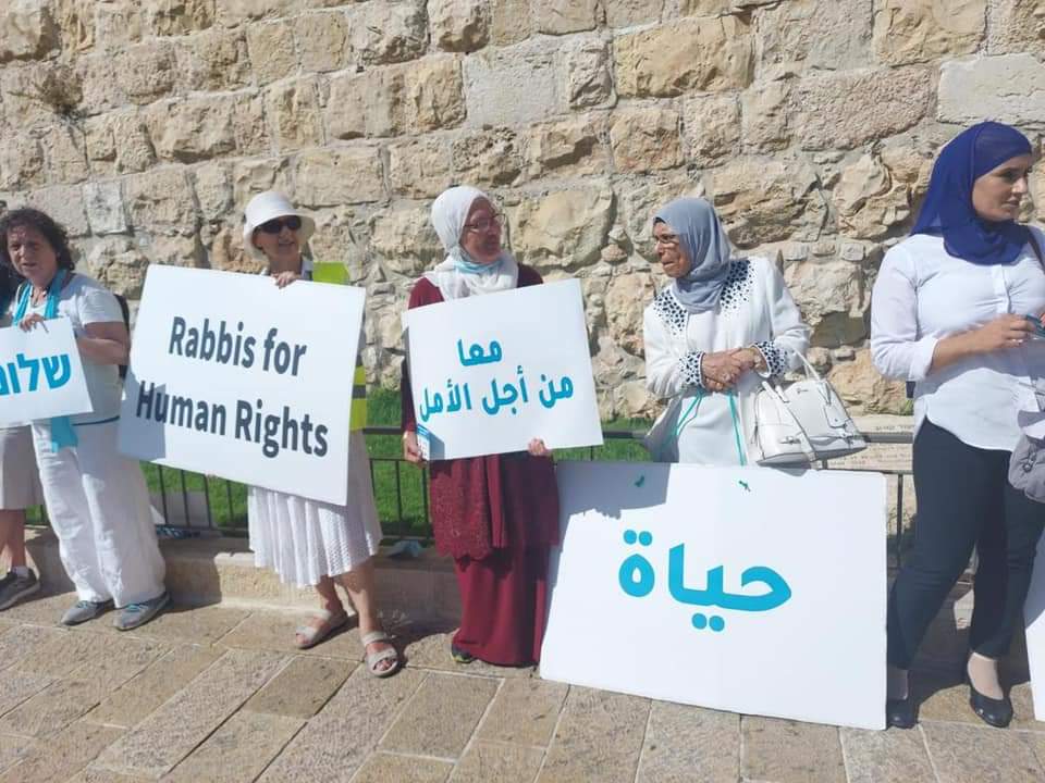 Israeli women staged a protest outside Jerusalem’s Old City walls Wednesday, calling for peaceful coexistence between Jews and Arabs amid the ongoing conflict between Israel and Palestinian militants in the Gaza Strip.