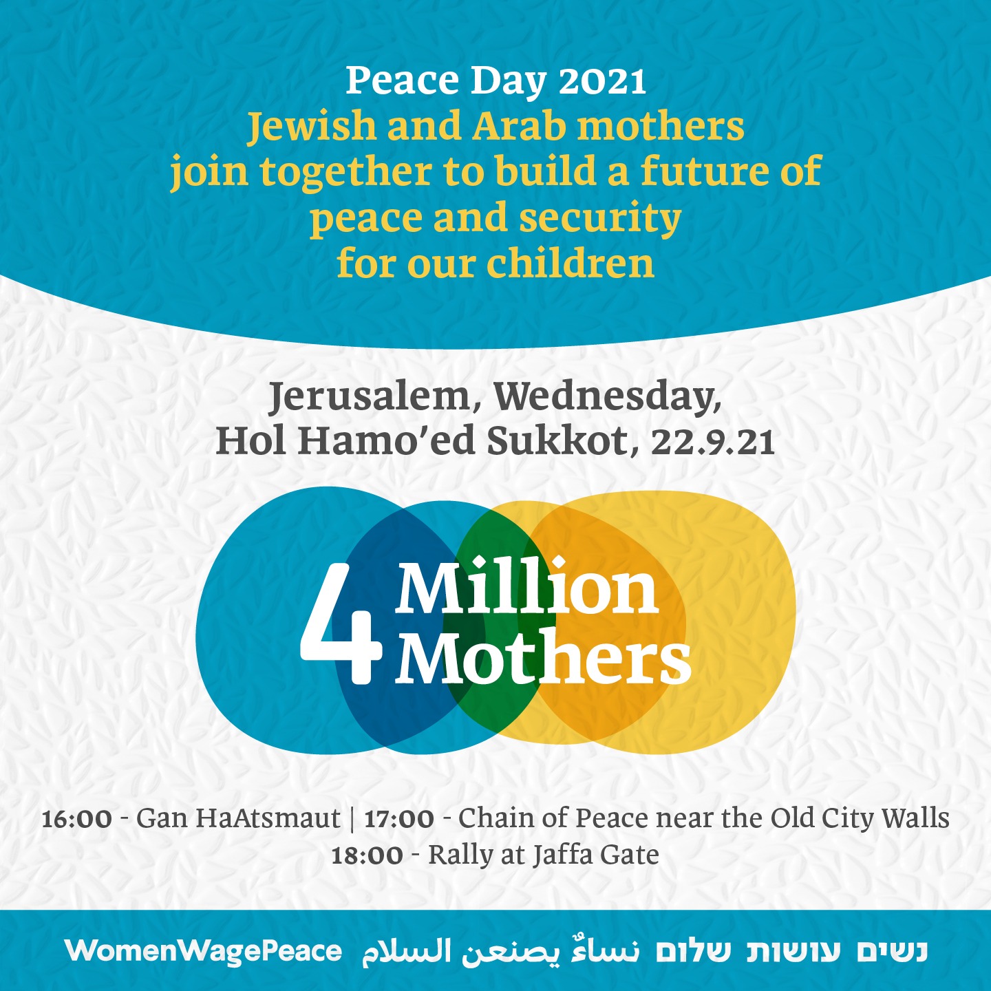 Facing the tension of the past few days, we will hold a Mothers’ Rally in Jerusalem. We will remind everyone that peace is not yet here and that we will do everything possible to bring about peace. We will stand together in a human chain along the walls of the Old City and hold a Mothers’ Rally with the hope that our voices will be heard by our leaders.
