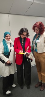 Women Wage Peace activists Naama Barak Wolfman and Kefaya Masarwa represented WWP in a high-profile visit to Brussels in the end of November, Belgium along with Women of the Sun Director Reem Alhajajra, with the support of WWP’sForeign Relations team members Angela Scharf in Belgium, as well as Regula Alon in Israel. The delegation participated in a series of meetings in the European Parliament and met with Hadja Lahbib, European Commissioner for Humanitarian Aid and Crisis Management and Helene le Gal, Managing Director, European Union European External Action Service for MENA (Middle East and North Africa) who signed our Mothers’ Call.