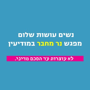 14/12/2017 @ 19:30 – 21:30 – נשים עושות שלום מזמינות אתכן/ם למפגש ״נר מחבר״ הדלקת נרות והכרות עם התנועה דרך סיפוריהן של נשים פעילות ממגוון קהילות וקהלים בהנחית לילך צור ומיכל כצנלסון. יום חמישי 14.12.17 בשעה 19:30 בית משפחת בר-נע גבעון רח' מגדל עוז 16 דירה 6 (קומת קרקע), מודיעין לפרטים : שרי 052-8712755 להרשמה: https://osotshalom.ravpage.co.il/MODEEN מספר המקומות מוגבל