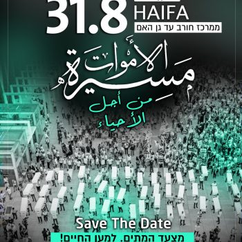 31/08/2023 @ 19:00 – 21:00 – המאבק בשפיכות הדמים ברחובות ערי וכפרי ישראל הוא מאבק של כולנו. إن المعركة ضد سفك الدماء هي معركة مشتركة لكافة الجماهير في إسرائيل נשים עושות שלום מצטרפות למצעד המתים למען החיים בחיפה. בואו איתנו!نساء يصنعن السلام سيشاركن بالمسيرة في حيفا. تعالوا معنا! יום חמישי 31.8.23 | יציאה בשעה 19:00 ממרכז חורב לאודיטוריום | […]
