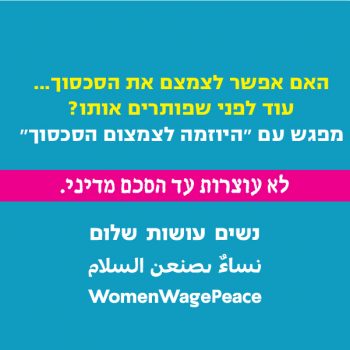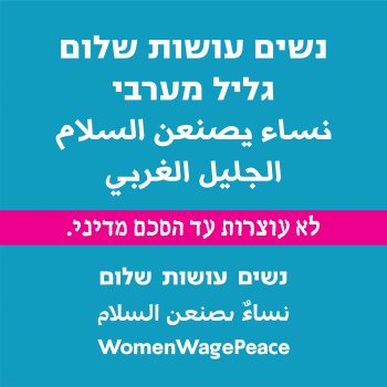 17/06/2021 @ 20:00 – 22:00 – נשים עושות שלום אזור השפלה משוחחות עם מייסדי היוזמה לצמצום הסכסוך במפגש נשוחח על תנועת נשים עושות שלום ועל היוזמה לצמצום הסכסוך, ונבחן יחד את הקשר בין צמצום הסכסוך לבין קידום הסכם מדיני לפתרון הסכסוך. מנחה: יעל שטימברג, רכזת שטח ארצית, נשים עושות שלום יום חמישי […]