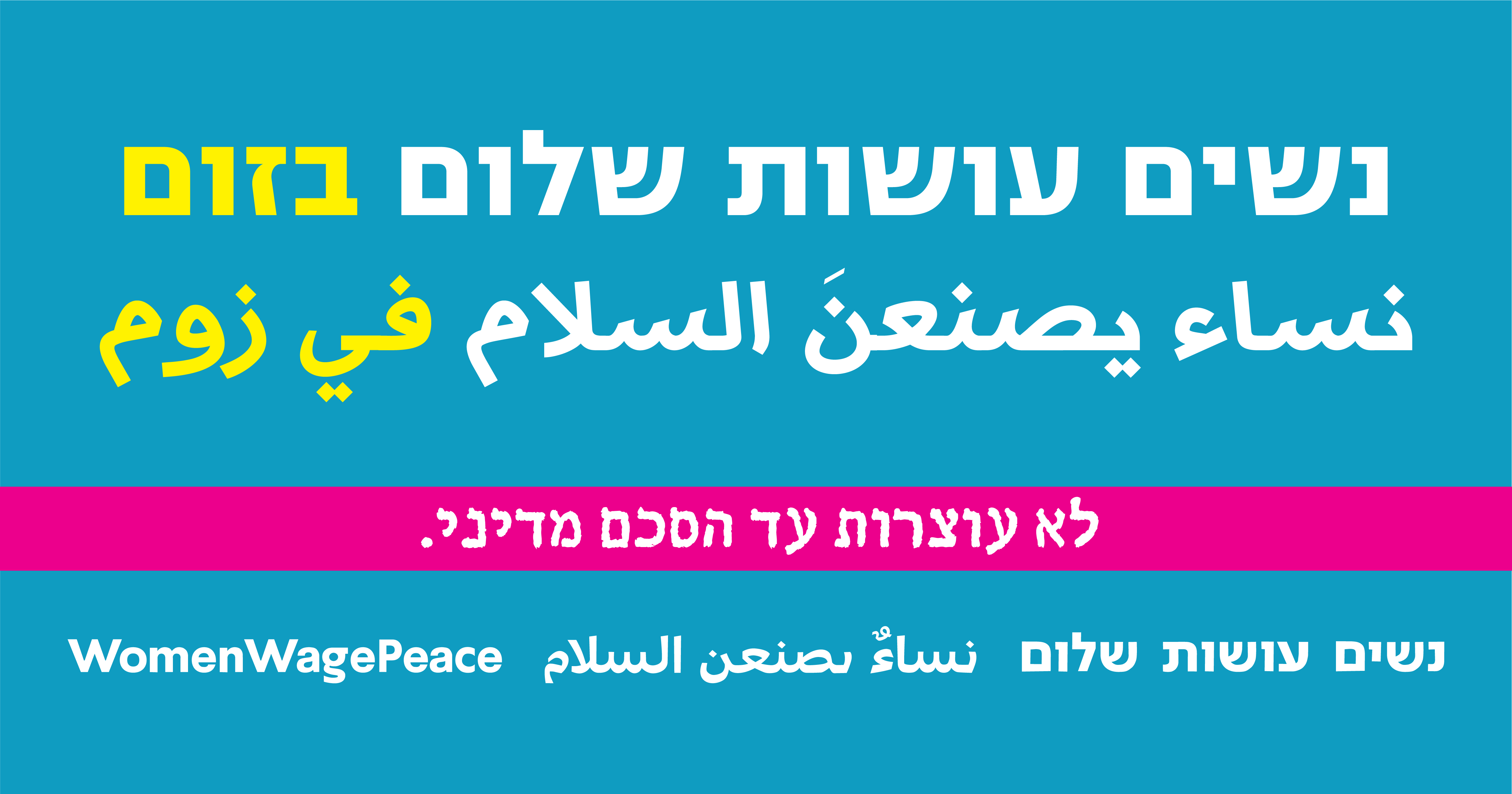 05/01/2021 @ 15:30 – 17:00 – נשים עושות שלום יוצאות לעמוד בצמתים באזור מגוריהן, כדי לעודד את העם ואת מנהיגיו לצאת לתהליך שלום, במסגרת פרויקט מתמשך – סעו לשלום! הגיעו לצומת הקרובה לביתכם למשך שעה וחצי בלבד: בימי שלישי בין 17:00-15:30 קרוב לבית, מאמץ קטן עם נראות עצומה! כנסו לפרטים ולמידע נוסף (מפה ורשימת הרכזות)