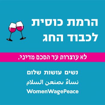 16/09/2020 @ 17:30 – 18:30 – נשים עושות שלום ירושלים והסביבה מזמינות את החברות להרמת כוסית לכבוד ראש השנה מפגש זום ביום רביעי 16.9.20 בשעות 18:30-17:30 בלבן וטורקיז (קישור יישלח לנרשמות במייל ובווטסאפ) אנא ודאי שיש לך: – אפליקציית זום במחשב או בטלפון, עם חיבור למצלמה ולמיקרופון – כוס יין – יכולת לראות את חצי הכוס המלאה להרשמה: https://osotshalom.ravpage.co.il/ToastJerusalem לבירורים: סו […]