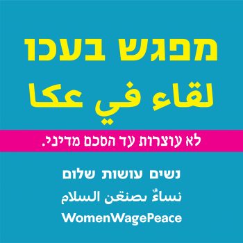 25/08/2020 @ 17:45 – 19:30 – נשים עושות שלום מזמינות למפגש הכרות עם נשים מעכו יום שלישי 25.8.20 בשעה 17:45 חוף הסוסים, עכו (בסמוך לחוף יש חניה ללא תשלום) מארחת: כיפאיה עאיטי | מנחה: אריאלה גניגר המפגש ביוזמת צוות מגוון בשיתוף נשים עושות שלום גליל מערבי תודות למר אדהם ג׳מל, סגן ראש העיר עכו, על האירוח האירוע יתקיים בהתאם להוראות משרד […]