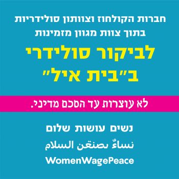 18/08/2020 @ 17:30 – 20:30 – נשים עושות שלום חברות הקולחוז וצוותון סולידריות בתוך צוות מגוון מזמינות אתכן להצטרף לביקור סולידרי ב״בית איל״ ״בית איל״ הוקם כדי להזכיר לכולנו את מחיר המלחמה ואת חובתנו לקדש את החיים, ונותן מענה של בריאות והנאה למגוון רחב של אוכלוסיות בתוכנית: – סיור מודרך בשדרת הלבנון ב״בית איל״ – שחייה בבריכות למי שמעוניינת – ארוחת […]