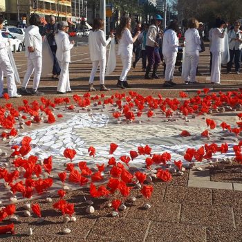 17/05/2019 @ 12:00 – יום שישי, 17/5 (יום לפני האירוויזיון) בשעה 12:00 ככר הבימה תכנית המיצג: נשים לבושות לבן (מכף רגל ועד ראש, וצמיד טורקיז אחד), אוחזות פרח אדום, תצעדנה בדממה ובאיטיות, בשורה עורפית במשך שעה, מכיכר הבימה בתל אביב לכיוון שדרות רוטשילד. בסוף השורה, אשה אחת תשא שלט שעליו יהיה כתוב ״נשים עושות שלום״ ואישה או שתיים תחלקנה […]