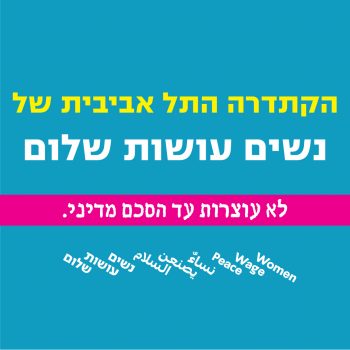 30/11/2018 @ 12:00 – 15:00 – العربية⬇ Eng⬇ נשים עושות שלום מעוטף עזה ומכל הארץ לא מחכות לסבב הבא דורשות פתרון שיבטיח שקט ארוך טווח ולא עוצרות עד הסכם מדיני! יום שישי 30.11 תל אביב 12:00 התכנסות וצעדה | רחבת קרית הממשלה (מול קניון עזריאלי) 12:30 עצרת תמיכה בתושבי העוטף | קפלן פינת ליאונרדו דה וינצ'י לרישום להסעות מרחבי הארץ: https://womenwagepeace.smarticket.co.il/ למשתתפות […]