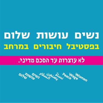 22/04/2018 @ 20:00 – 22:00 – נשים עושות שלום היא תנועה בלתי מפלגתית של אלפי נשים בכל הארץ הפועלות במרחב הציבורי והפוליטי. התנועה פועלת להשיב את חזון השלום למרכז השיח הציבורי ולהוביל לפתרון לא אלים, מכבד ומוסכם של הסכסוך הישראלי פלסטיני. חברות בתנועה נשים בעלות דעות שונות, גילאים שונים, יהודיות וערביות, חילוניות ודתיות. במפגש נספר על התנועה, על הפעילויות בשלוש השנים […]