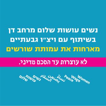 09/04/2018 @ 19:00 – 21:00 – האם יש תקווה להדברות? האם יש אפשרות לפיוס? נשים עושות שלום מרחב דן בשיתוף עם ויצ"ו גבעתיים מארחות את יוזמת שורשים יום שני 9.4.18 בשעה 19:00 בית ויצ"ו, בן גוריון 216 גבעתיים אוטובוסים: 52, 23 מרכבת השלום/עזריאלי, 16 מתוך גבעתיים, 63 עוצר בכצנלסון פינת בן-גוריון שאדי אבו אוועד תושב בית אומר והרב חנן […]