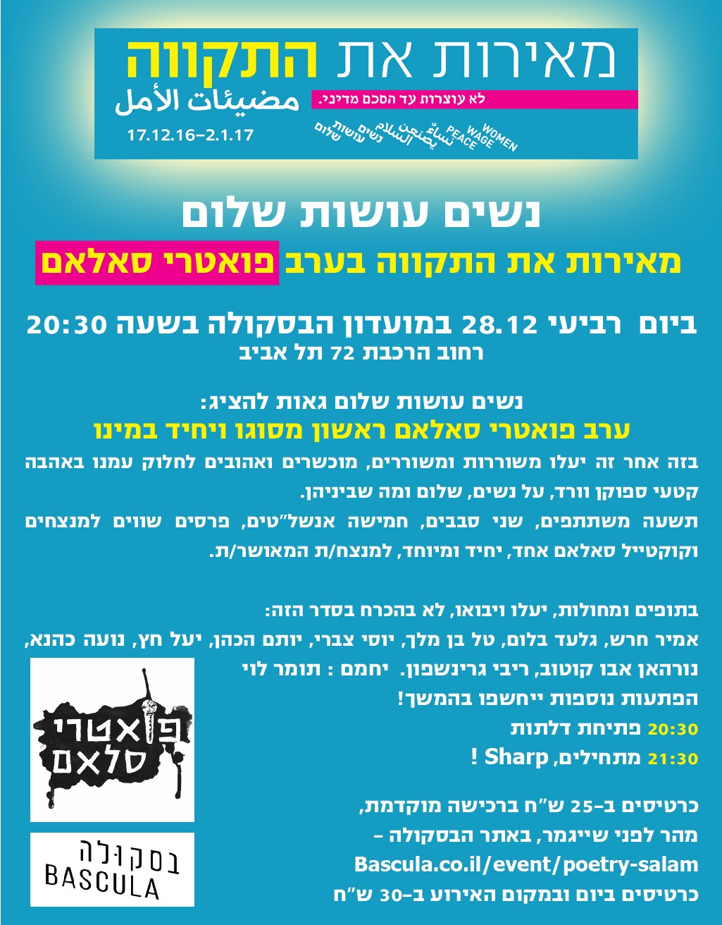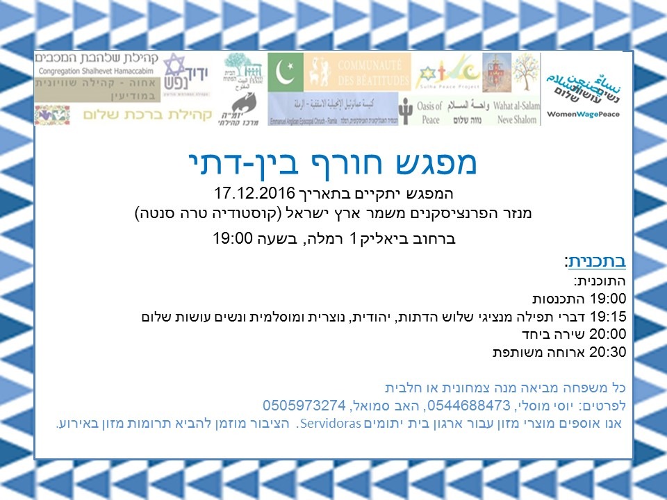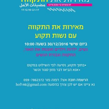 בתכנית: פעילות piece for peace- יצירה משותפת של פיסות לשלום, לימוד משותף בנושא חנה – גיבורה הקשורה לחנוכה, הדלקת נרות,… קרא עוד »